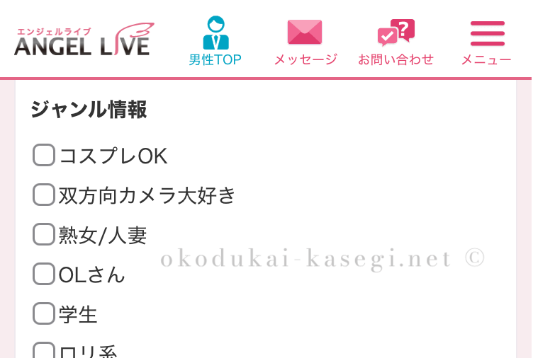 エンジェルライブの男性会員が女の子を検索する時に検索条件としてオプションとして設定できるのが、この「登録ジャンル」です。