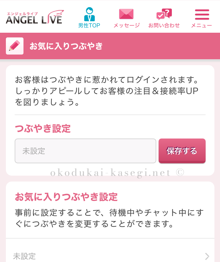 また「お気に入りつぶやき」を設定しておくことで、待機中やチャット中にすぐにつぶやきを変更することができます♪